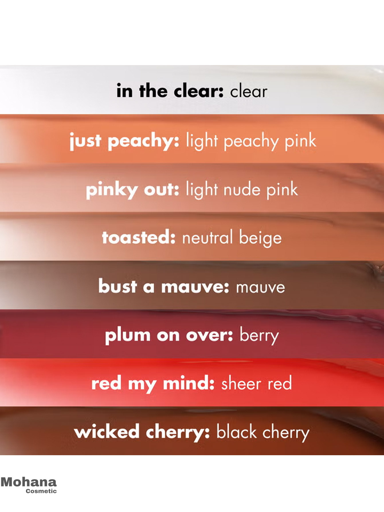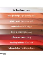 Bust a Mauve, In the Clear, Just Peachy, Pinky Out, Plum on Over, Red My Mind, Toasted, Wicked Cherry |