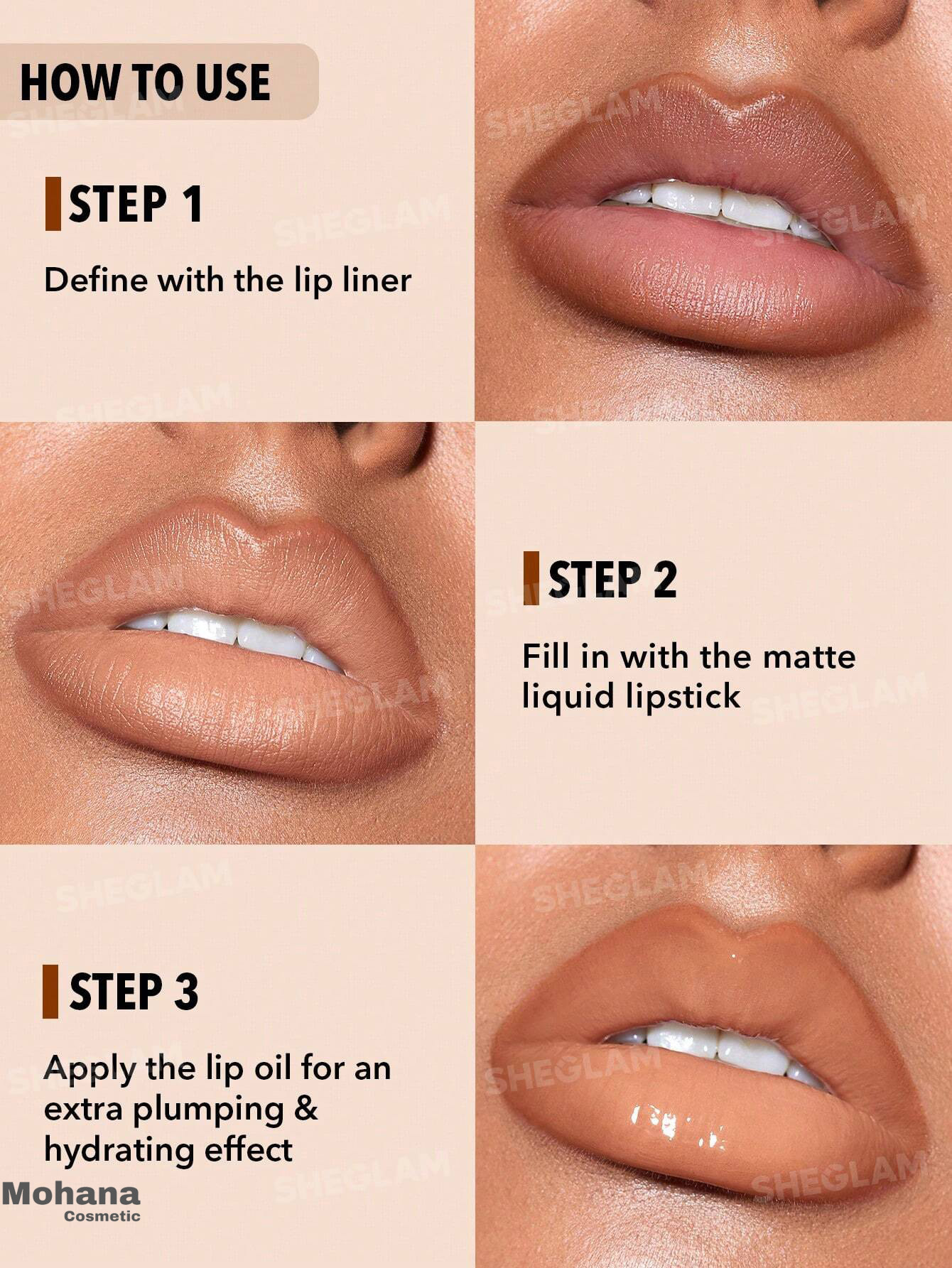 ست خط لب و رژلب و لیپ گلاس شیگلم مدل Soft 90’s Glam