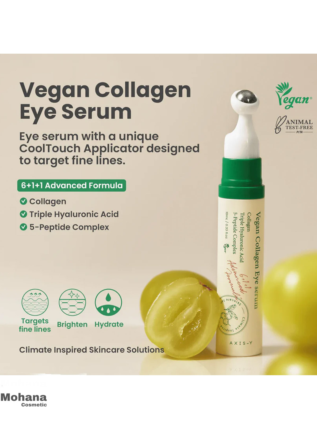 سرم دور چشم (Vegan Collagen Eye Serum) از برند AXIS-Y، یک انتخاب پیشرفته و مؤثر برای مراقبت از پوست اطراف چشم است. با ترکیبی از کلاژن گیاهی، پپتیدها، اسید هیالورونیک و عصاره‌های میوه‌ای، این سرم به‌طرز چشمگیری می‌تواند چروک‌ها، پف و تیرگی زیر چشم را کاهش داده و ناحیه چشم را آبرسانی، تقویت و روشن کند. اپلیکاتور CoolTouch تجربه کاربری راحت و مطبوعی را فراهم می‌کند، در حالی که نتایج بالینی سریع و ملموس نیز اعتبار عملکرد آن را بالا می‌برد. فرمول هیپوآلرژنیک و مناسب برای پوست حساس آن را به گزینه‌ای مطمئن برای همه تبدیل کرده است.