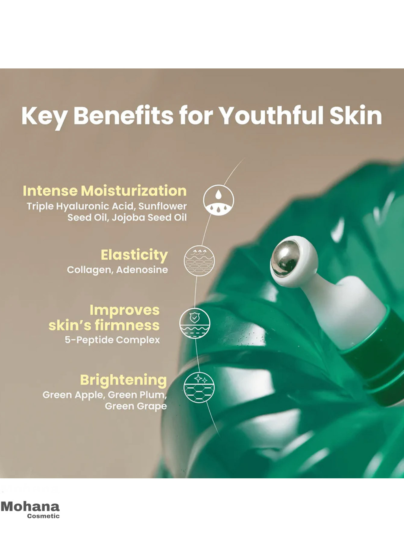 • عملکرد: آبرسانی عمیق و بازسازی ناحیه دور چشم؛ کاهش خطوط ریز و افتادگی، کاهش پف و تیرگی، افزایش کشسانی و درخشندگی پوست با جذب سریع و بدون حس چسبندگی
