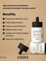 سرم آلفا آربوتین ۲٪ برند COSRX یک سرم تخصصی ضد لک و یکنواخت‌ کننده رنگ پوست است که با فرمولی قوی از آلفا آربوتین، نیاسینامید، اسید ترانکزامیک استیل گلوکوزامین به کاهش لکه‌های تیره، جای جوش و رنگ ناهماهنگ پوست کمک می‌کند. این سرم با ترکیبات هم‌ افزا، باعث روشن‌ تر شدن پوست و افزایش شفافیت بدون ایجاد احساس سنگینی می‌شود و مناسب استفاده در هر دو روتین روزانه و شبانه است.