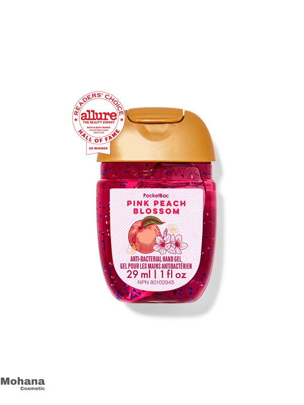 ژل ضدعفونی‌کننده دست Pink Peach Blossom PocketBac از برند Bath & Body Works ترکیبی از کارایی بالا در ضدعفونی و رایحه‌ای خوشایند و میوه‌ای را ارائه می‌دهد. فرمول آن با الکل ۷۰٪ برای از بین بردن باکتری‌های دست طراحی شده و در عین حال با ترکیبات مرطوب‌ کننده مانند شی باتر، آلوئه‌ورا و ویتامین E، از خشک شدن پوست جلوگیری می‌کند. رایحه‌ای ملایم از هلو، مگنولیا و نارنگی، تجربه‌ای تازه و بهاری در هر بار استفاده فراهم می‌آورد.
