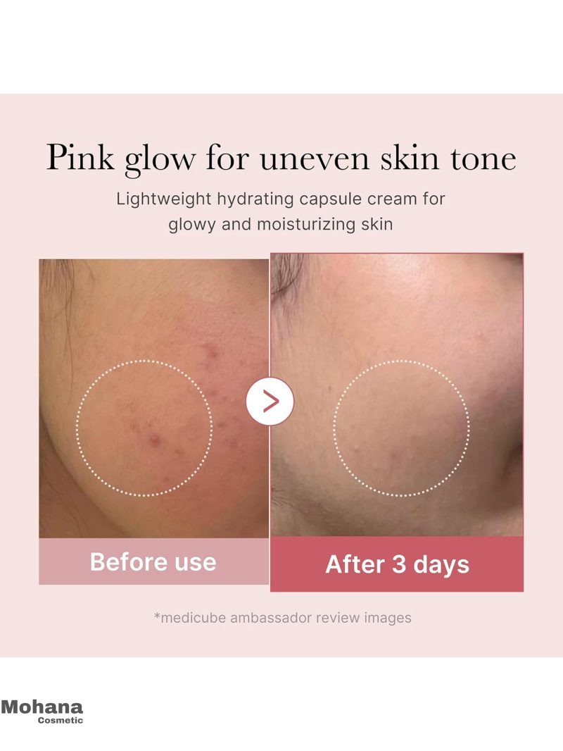 کرم کپسولی کلاژن و PDRN مدیکیوب (Medicube PDRN Pink Collagen Capsule Cream) یک مرطوب‌کننده پیشرفته است که با ترکیب کپسول‌های صورتی کلاژن و ژل شفاف، به بهبود خاصیت ارتجاعی پوست و افزایش درخشندگی آن کمک می‌کند. این کرم بافتی سبک و غیرچسبنده دارد که به‌سرعت جذب پوست می‌شود و احساس سنگینی ایجاد نمی‌کند.